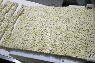 - SMCF-650切塊機出產金黃沙琪瑪, 客戶的現場, 切工致齊有序(沙琪瑪切塊機,中國式小吃,都城沙琪瑪,膨化食物分切機)